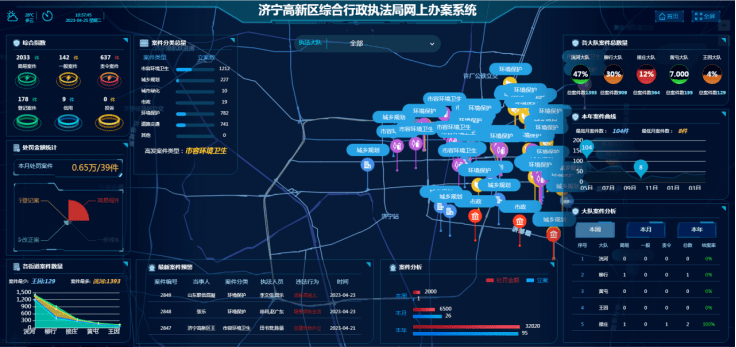 网上办案系统运行以来,共办理简易程序2024起,一般程序案件138起,处罚金额共计1020081元。下达限改文书635份,先行登记保存177份。根据三项制度要求,配备4G回传执法记录仪,全过程记录的同时,支持4G无线传输功能,实现了执法流程网上运转、执法数据网上汇集、执法监督网上实施。济宁高新区立足改革创新,服务广大群众,按照“精细管理、服务为先、多元联动、协同发展”的思路,坚持网格化、信息化、社会化、群众化、法治化、精细化“六化融合”,以城管执法网上办案系统为载体,将行政执法精细化水平提高到了新高度。