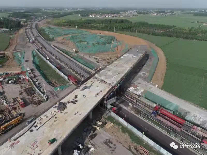 时庄互通立交是G327改建工程东段重要控制节点工程,位于曲阜刘家村南,跨越G104,采用单喇叭型式,桥梁跨径组合为4×25+4×25米,全宽20米,上部结构采用现浇预应力混凝土等截面连续箱梁,下部结构采用柱式墩、肋板台、钻孔灌注桩基础。施工单位进场以来,精心编制施工方案和交通组织方案,在保障G104通行畅通前提下,加大施工人员、机械设备、支架模板投入,全力全速加快施工。目前,整个立交工程已完成总量62%,下步将进行桥面系、附属设施及匝道路基路面施工,计划8月底完工。