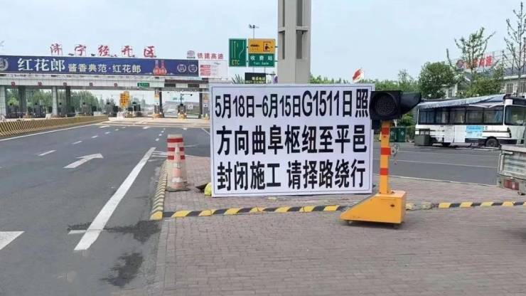 从2022年5月18日起到2022年6月15日 G1511日兰高速从曲阜枢纽到临沂边界日照方向封闭施工。期间,曲阜东收费站、泗水收费站、泉林收费站日照方向封闭。如有临沂、日照方向通行需求的驾驶员朋友,请从曲阜枢纽往曲阜收费站下走G327绕行到平邑收费站再上高速。