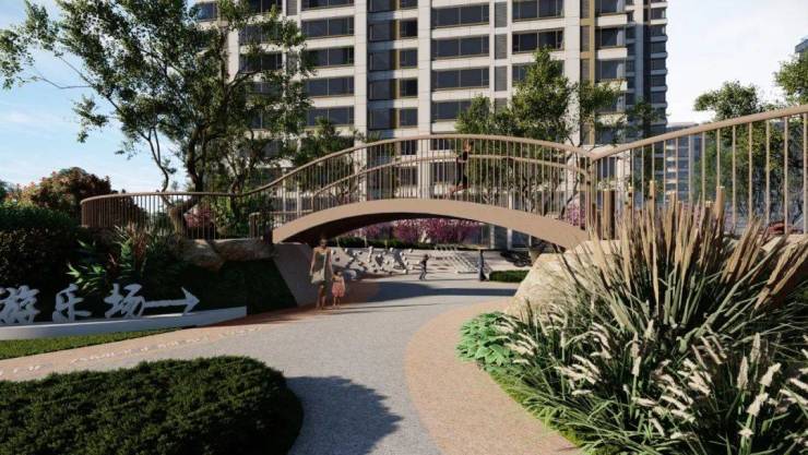 孩子探索世界的入口不止手中的ipad,更在公园滑梯的出口。“惊奇河谷、冒险石滩”内各类游玩设施——趣味景墙、组合滑梯、儿童爬坡、种植池等,迎合儿童爱玩的天性的同时,营造专属“自然课堂”,满足其探索、好奇心理。