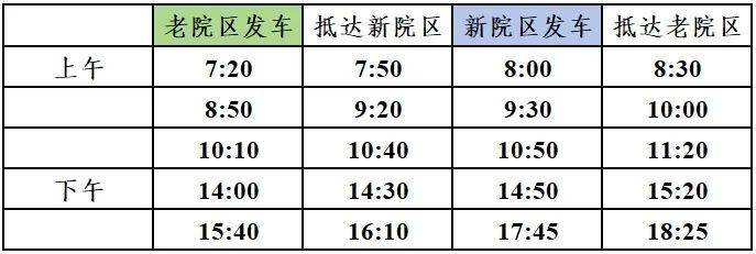 为方便患者和医院职工通行,医院开通老院区至新院区往返班车,通行时间和站点如下: