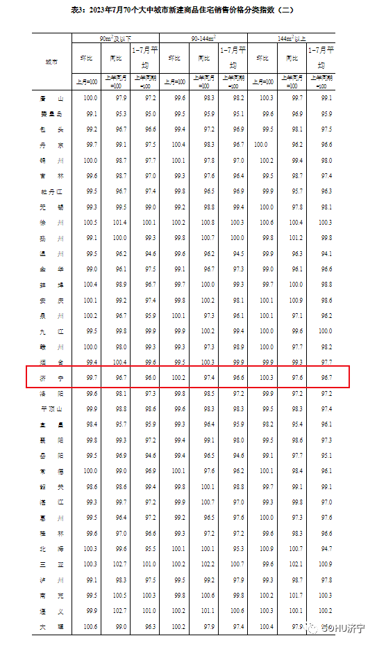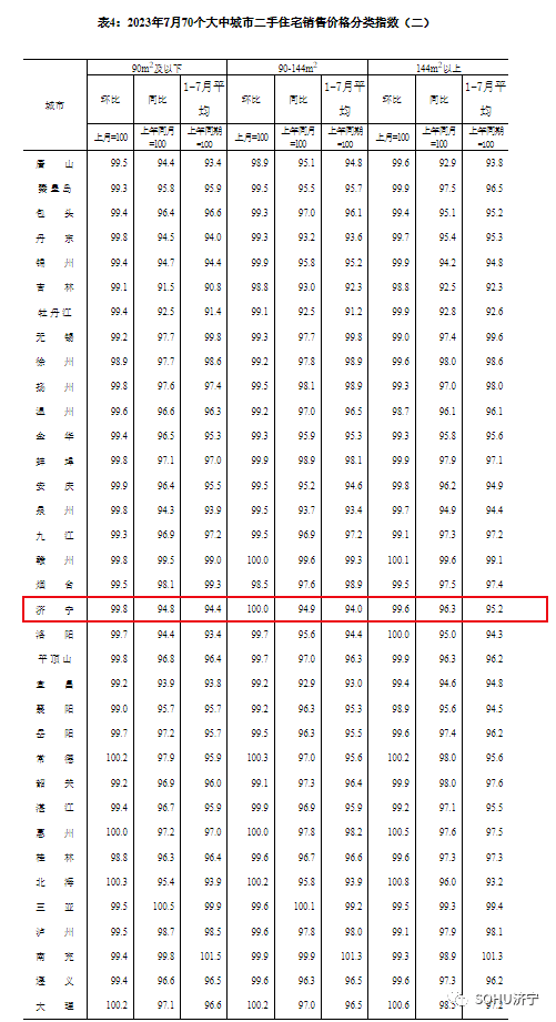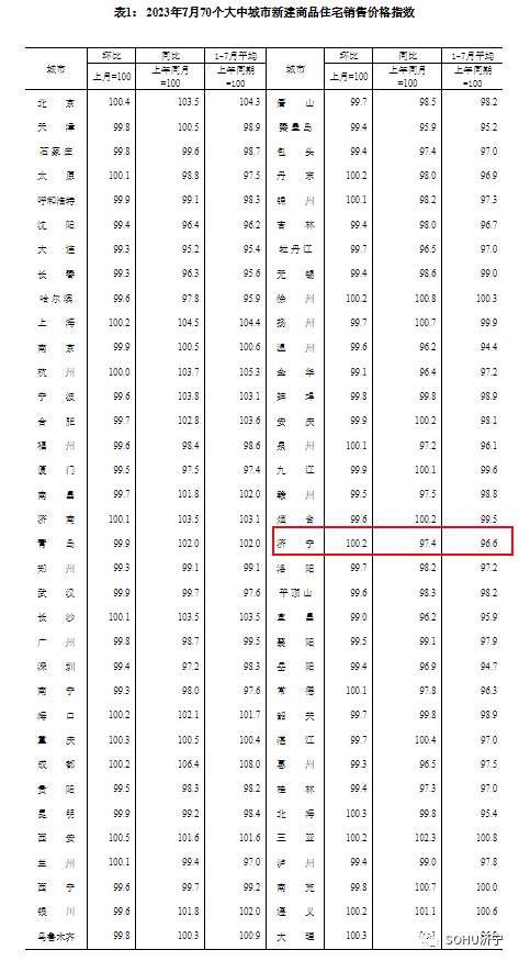 搜狐网济宁小编注意到:今早9点30分,国家统计局发布了2023年7月份70个大中城市商品住宅销售价格变动情况统计数据。2023年7月份济宁新建商品住宅销售价格环比增长0.2个百分点。