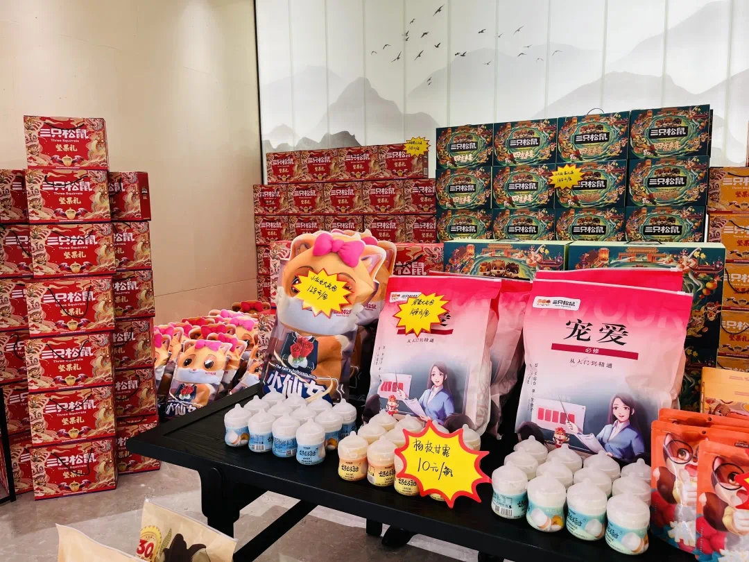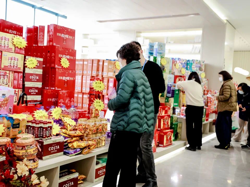 准备年货的热闹,是春节不褪色的记忆。湖畔雲庐将“超市”搬到生活美学馆,红红火火的集市摊位,一一摆开的坚果大礼包,让时光仿若回到小时候,五花八门的零食礼盒,自带喜庆氛围,异常热闹……现场围满了前来抢购年货的人,各个年货摊位都忙得不亦乐乎。