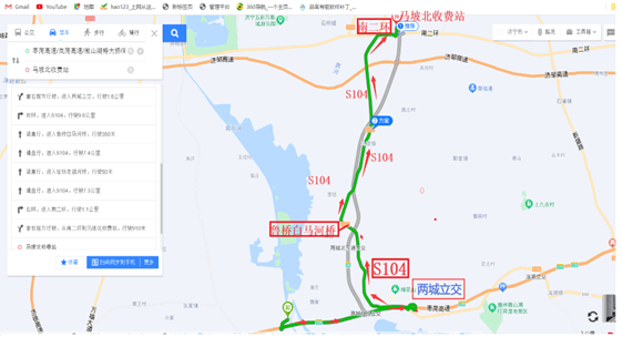 微山、菏泽、岚山至济南方向:从岚菏高速两城收费站驶出,经S104省道、南二环至济微高速马坡北收费站驶入。