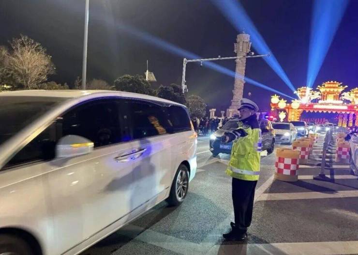 元宵节期间,预计太白湖景区周边区域人流量、车流量将大幅攀升。对此,济宁公安交警北湖区勤务大队全员在岗在位,在管制区域周边及主要路口定点值守,设置交通指引标志,同时开展动态巡逻疏导工作,及时处置各类交通突发情况,全力保障道路通行秩序。