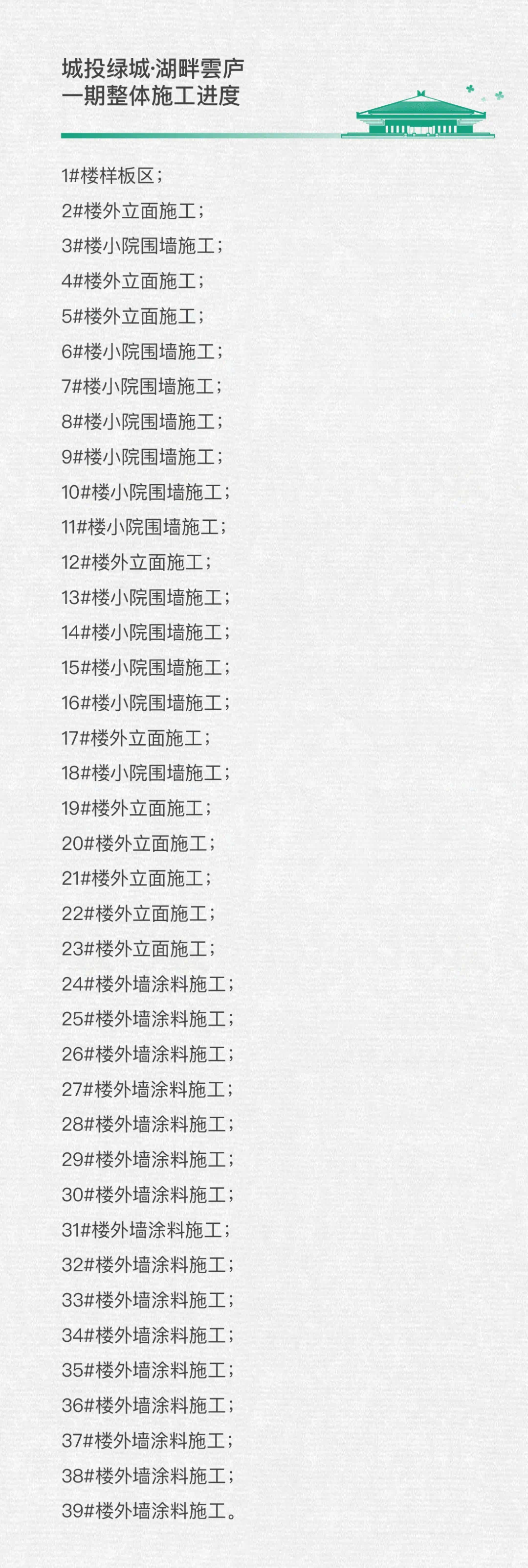 城投绿城·湖畔雲庐日复一日的坚守,执着每个施工细节,只为缩短您与幸福的距离。在时光的坚定步伐中,静候关于家的温暖。