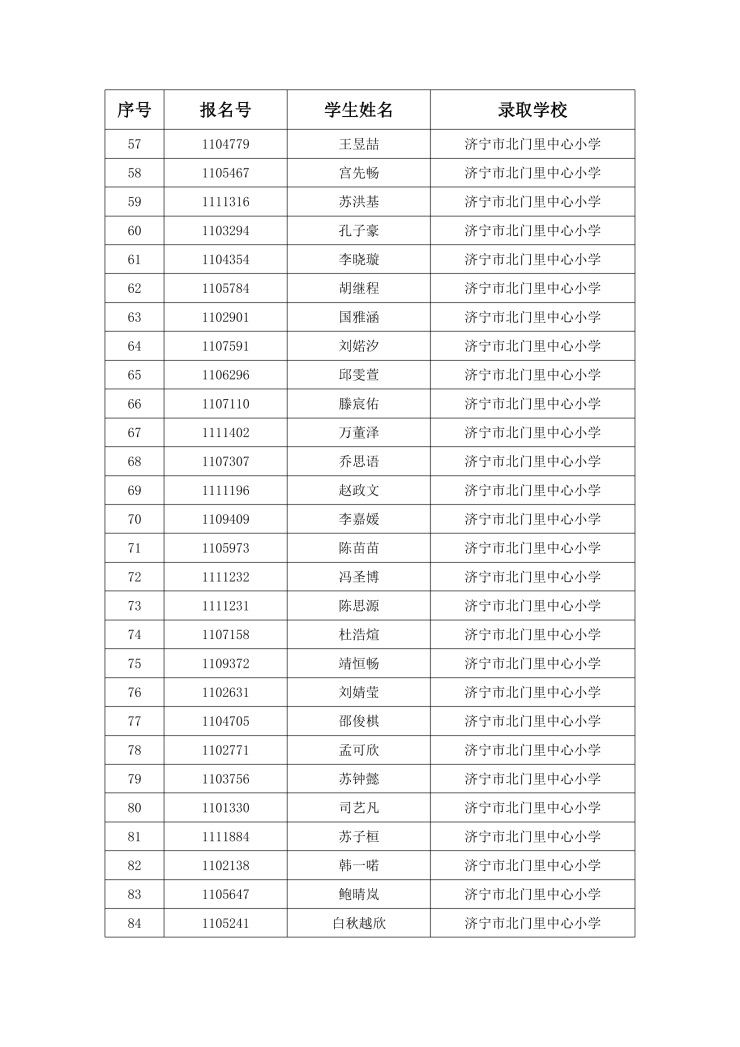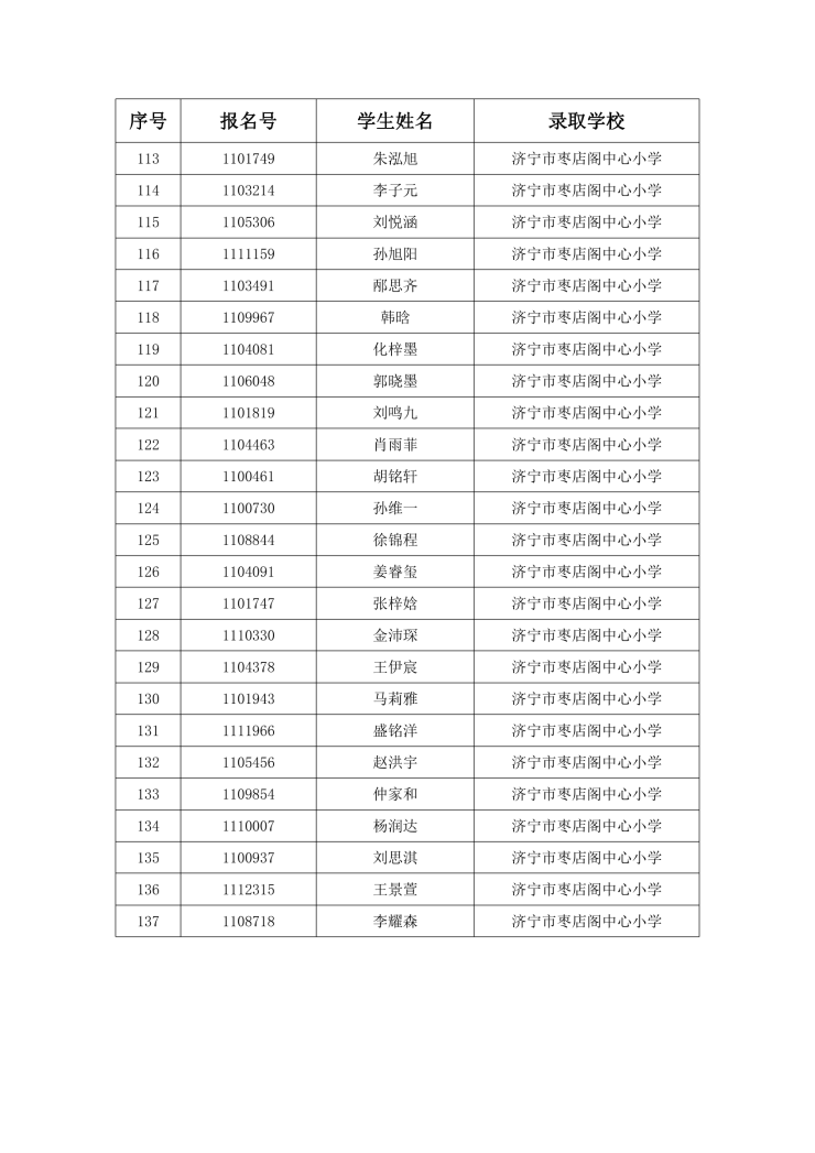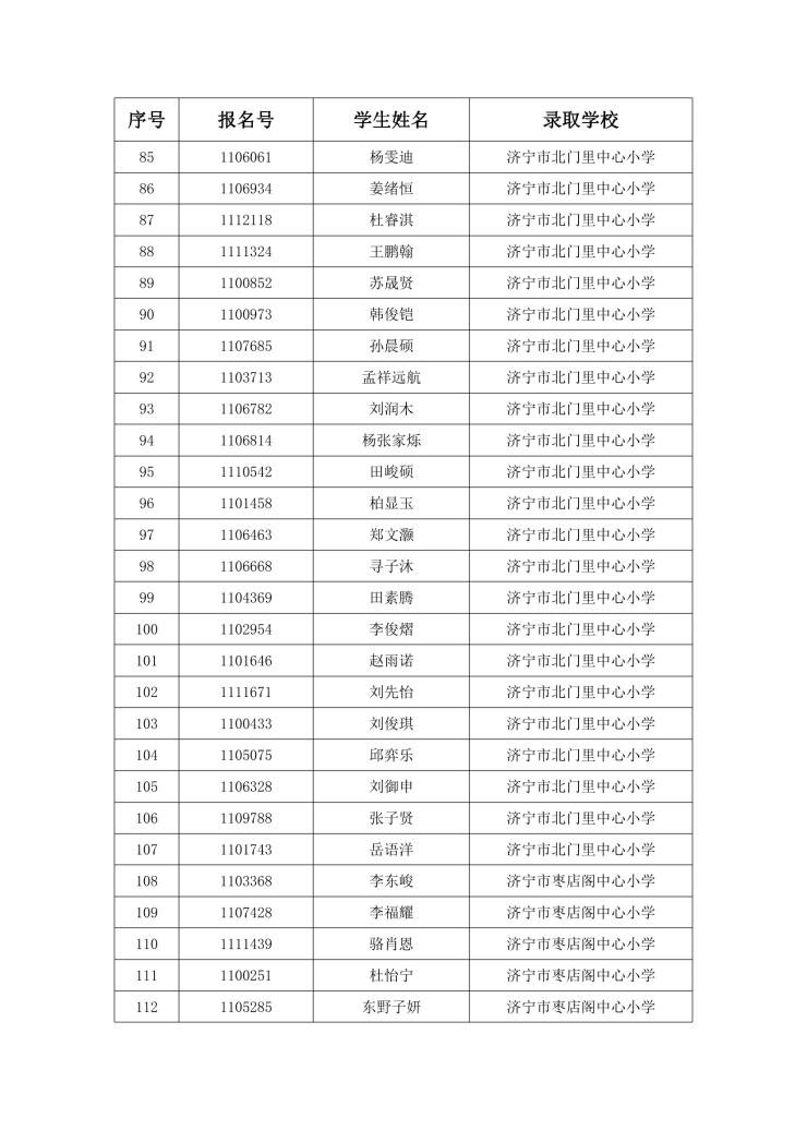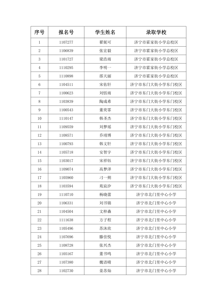 2022年任城区城区户籍适龄儿童入学电脑派位录取结果公布
