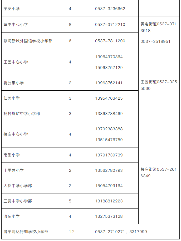 (5)济宁高新区大郝中学小学部:大屯村、大郝村、八里营新村(原八里营村、蒋屯村)。