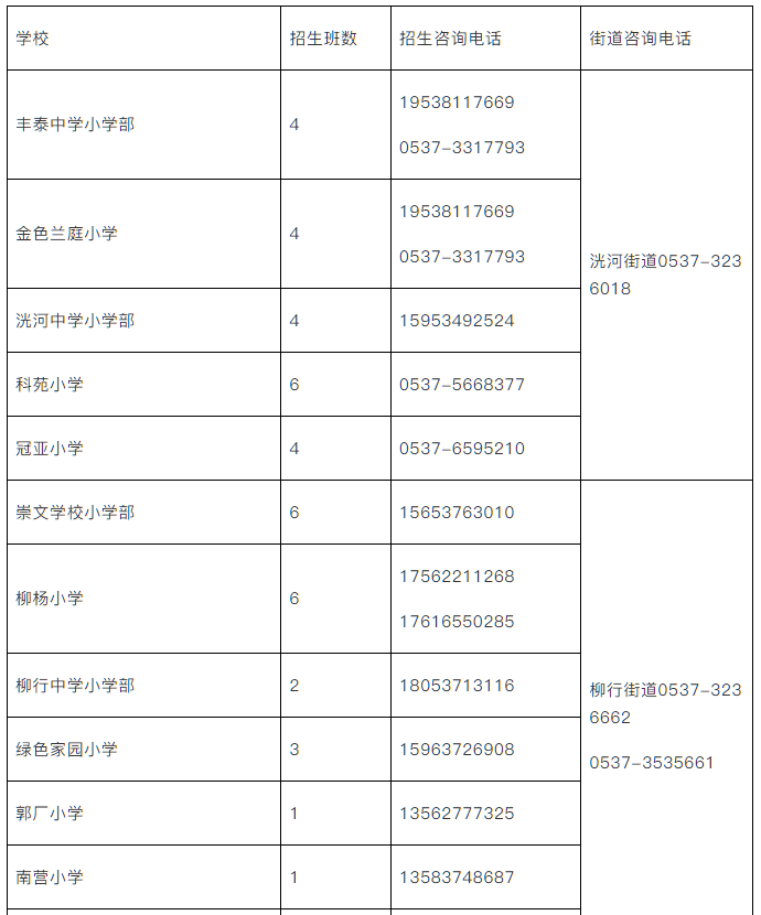 洸河街道辖区内丰泰中学小学部、金色兰庭小学毕业生主要对口丰泰中学,科苑小学、冠亚小学毕业生主要对口济宁高新区洸河中学;柳行街道辖区内崇文学校小学部对口崇文学校中学部,绿色家园小学毕业生对口蓼河新城外国语学校中学部和济宁海达行知学校初中部。柳行中学小学部、柳杨小学、南营小学、郭厂小学毕业生对口柳行中学;黄屯街道辖区内黄屯中心小学毕业生对口黄屯中心中学和蓼河新城外国语学校中学部;王因街道辖区内王因中心小学、娄公集小学和仁美小学毕业生对口王因中心中学,杨村煤矿中学小学部毕业生对口杨村煤矿中学中学部;接庄街道辖区内接庄中心小学、南集小学毕业生对口接庄中心中学,大郝中学小学部毕业生对口大郝中学中学部,十里营小学毕业生对口济宁海达行知学校初中部,三贾中学小学部毕业生对口三贾中学中学部,济东小学毕业生对口济东中学;济宁海达行知学校小学部对口济宁海达行知学校初中部。