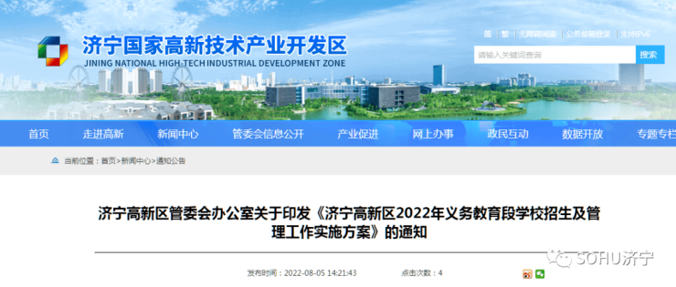 济宁高新区2022年义务教育段学校招生及管理工作实施方案