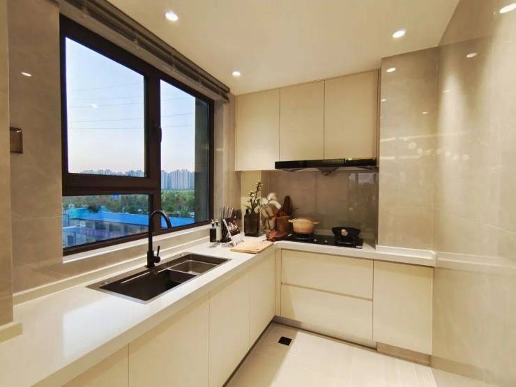 科学设计L型厨房,流畅动线,洗、切、炒空间划分明确清晰,让烹饪变得更便捷,满足每个人的口味。在这里,居者不仅拥有宽敞的活动空间,且操作动线无缝衔接、顺畅自如,将烹饪升级为逸趣享受。