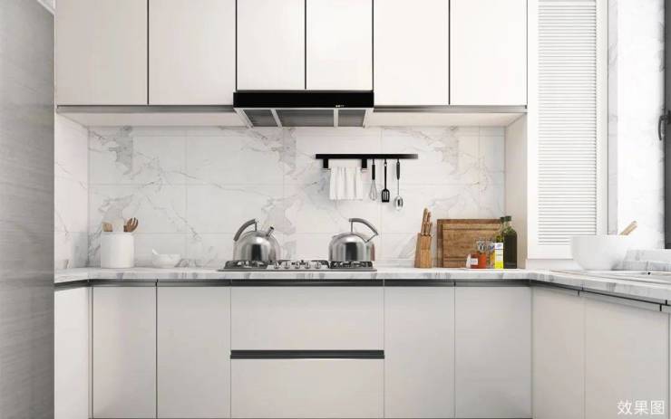 全U型厨房格局,不仅有良好的通风、采光,同时保障科学动线布局、功能区合理划分,兼具空间感与便利性,双人共同下厨一气呵成,提高烹饪效率,让做饭也成为一种享受。