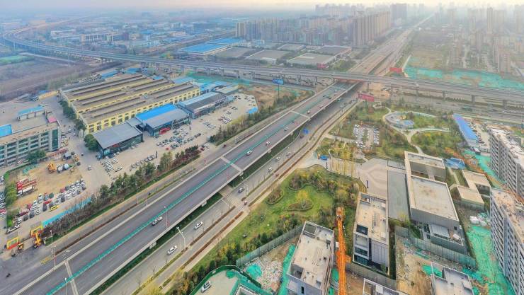 该项目西起杨柳街,东至规划兴旺路,全长1200米。跨线桥长911米(含两端落地段),其中桥梁段600米,跨线桥、地面辅路均为双向6车道设置。项目桥梁采用装配式建造技术和预制拼装技术。建设内容包括跨线桥梁、地面道路改扩建、雨污水管道、挡土墙、交安照明工程等。