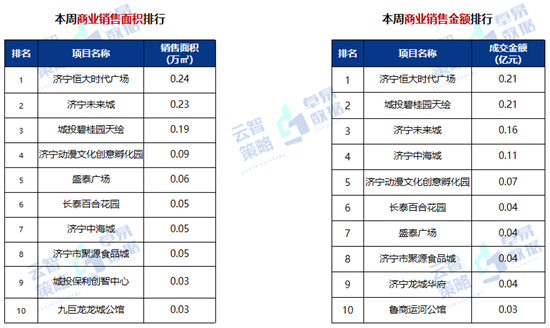 本周济宁恒大时代广场项目以销售面积0.24万㎡,销售金额0.21亿元,位居双排行榜排名前列。