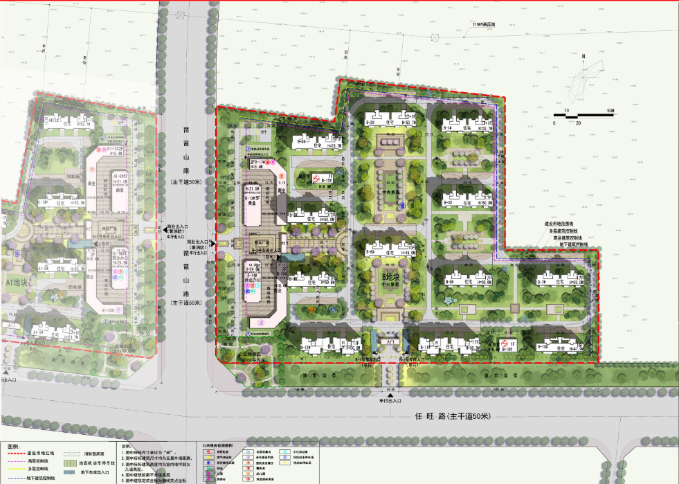 项目规划建设用地57794㎡(约合87亩),总建筑面积142951.96㎡;其中地上总建筑面积为101369.99㎡,地下总建筑面积为41581.97㎡;建筑类型涉及多、高层住宅、商业、办公等;规划居住户(套)数:750户(套);可居住人数约为2400人(3.2人/户计算);容积率为1.75;建筑密度24.6%;绿地率35.4%;规划机动车停车位850个;非机动车停车位1347个;