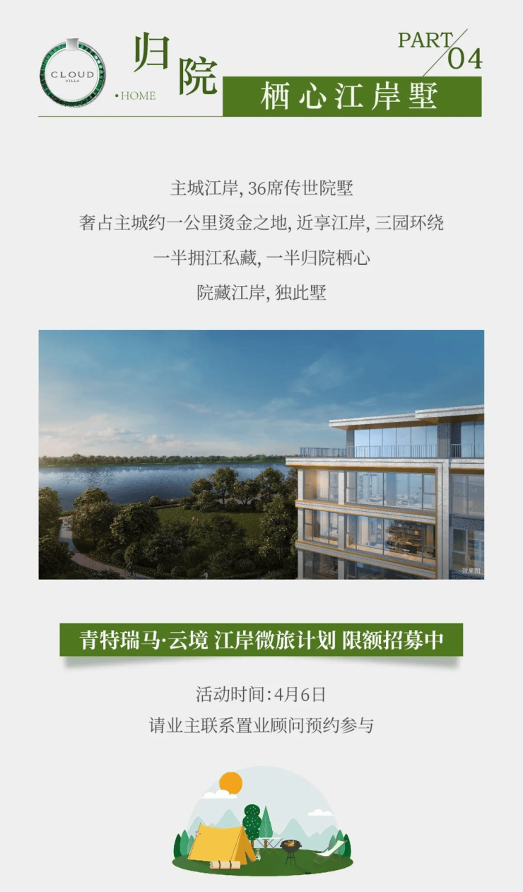 青特瑞马云境主城江岸,36席传世院墅。奢占主城约一公里烫金之地,近享江岸,三园环绕。一半拥江私藏,一半归院栖心。院藏江岸,独此墅。