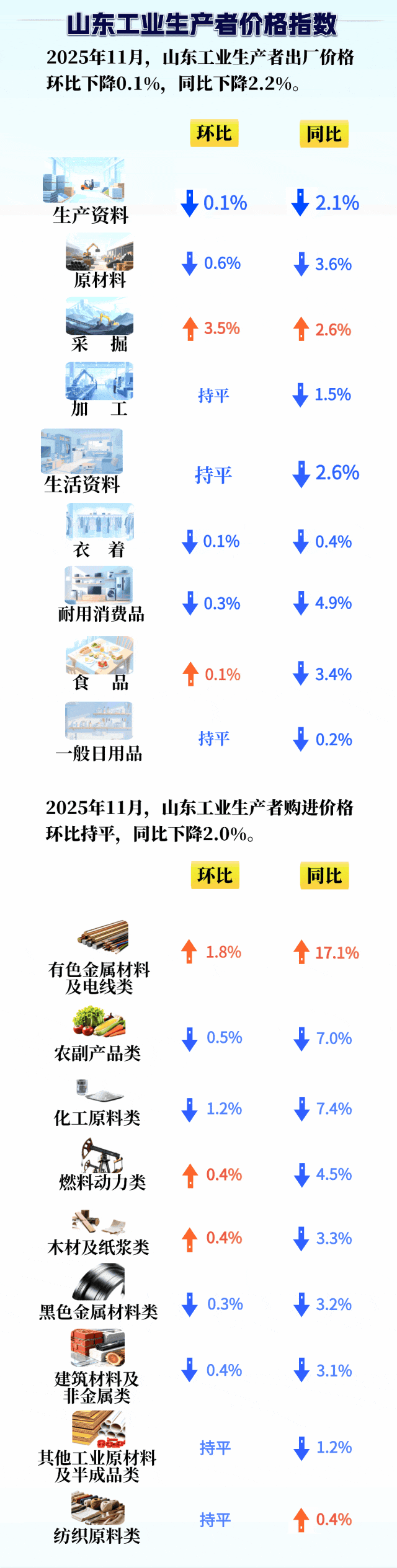 2025年11月,山东居民消费价格环比下降0.2%,同比上涨0.4%。