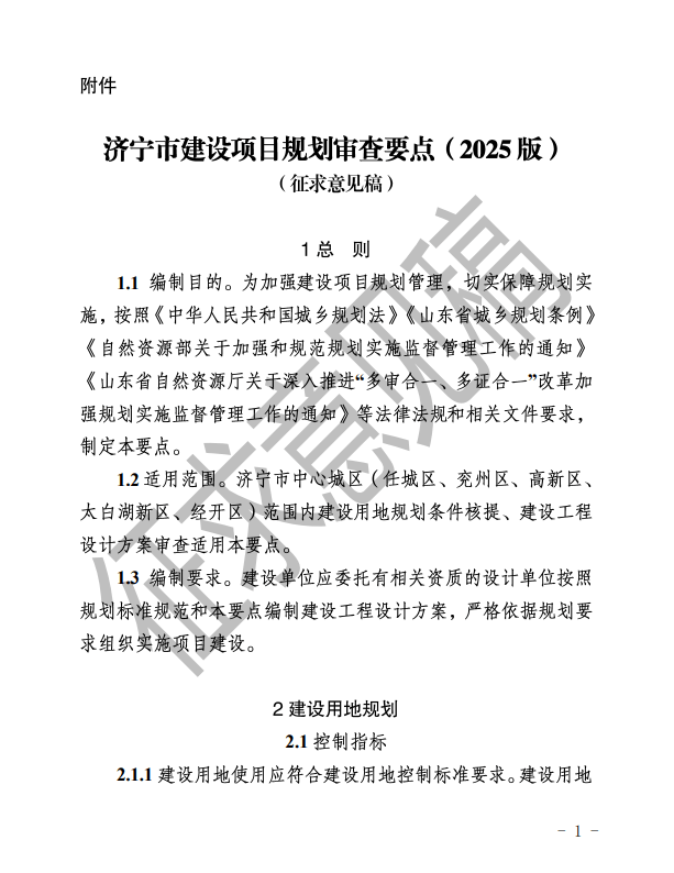 即将出台!济宁市建设项目规划审查要点(2025版)征求意见稿公布