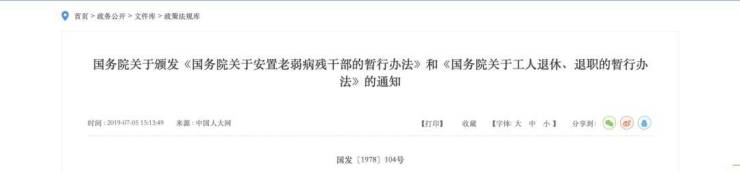 关于这一规定,根据《国务院关于工人退休、退职的暂行办法》:
