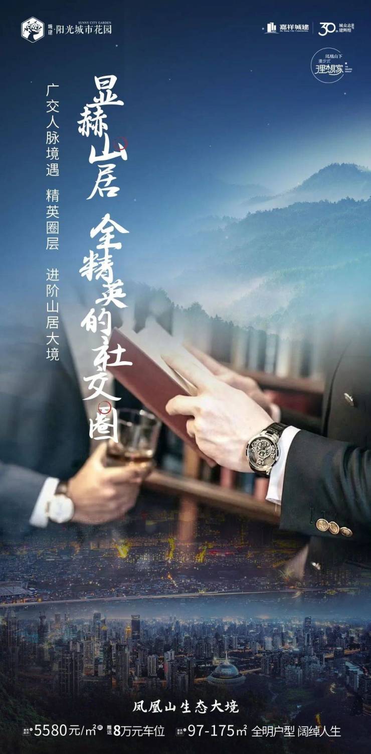 显赫山居,全精英的社交圈。广交人脉境遇,精英圈层,进阶山居大境。阳光城市花园约5580元/㎡,赠送8万元车位。