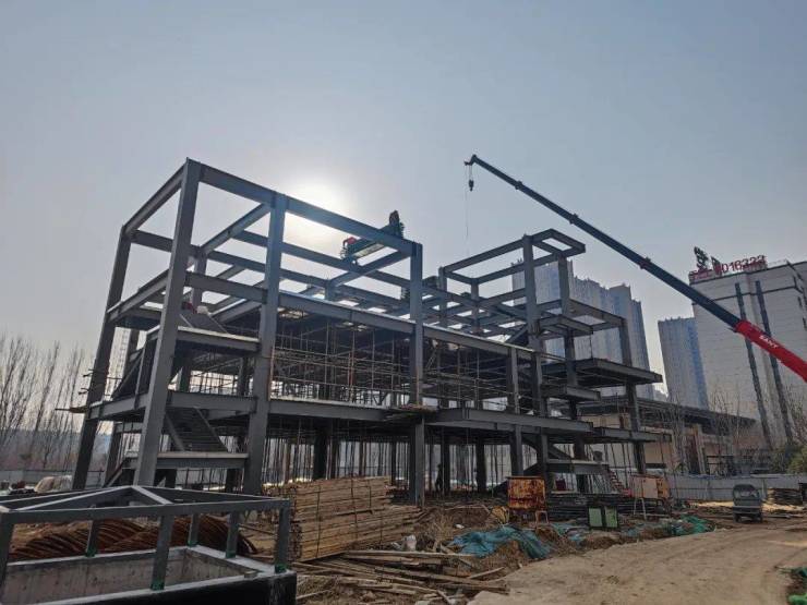 幼儿园独一层浇筑完成;二层桁架板铺装完成;