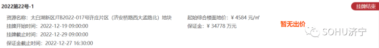 无竞买方出价!济宁太白湖新区1宗住宅用地使用权流拍