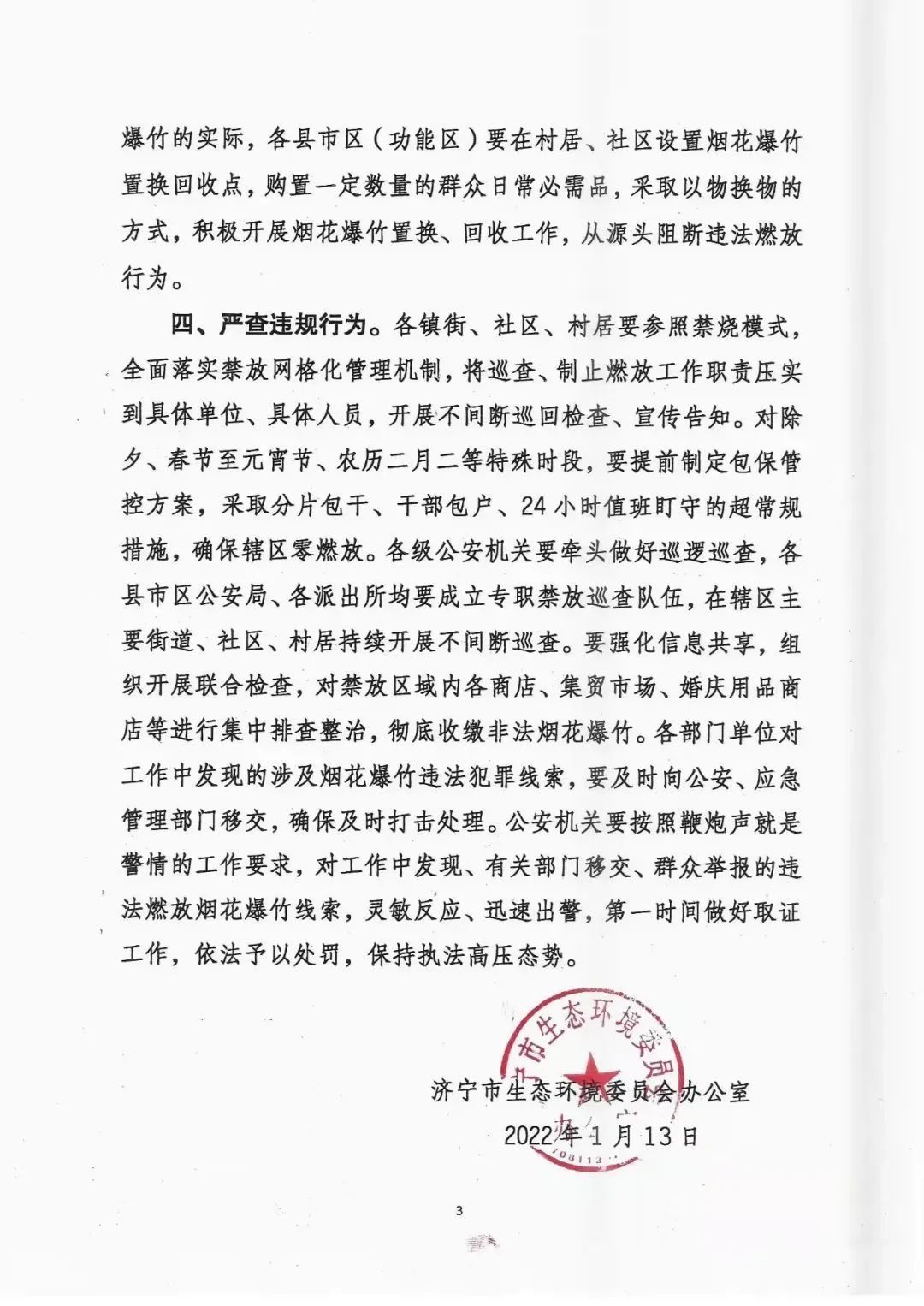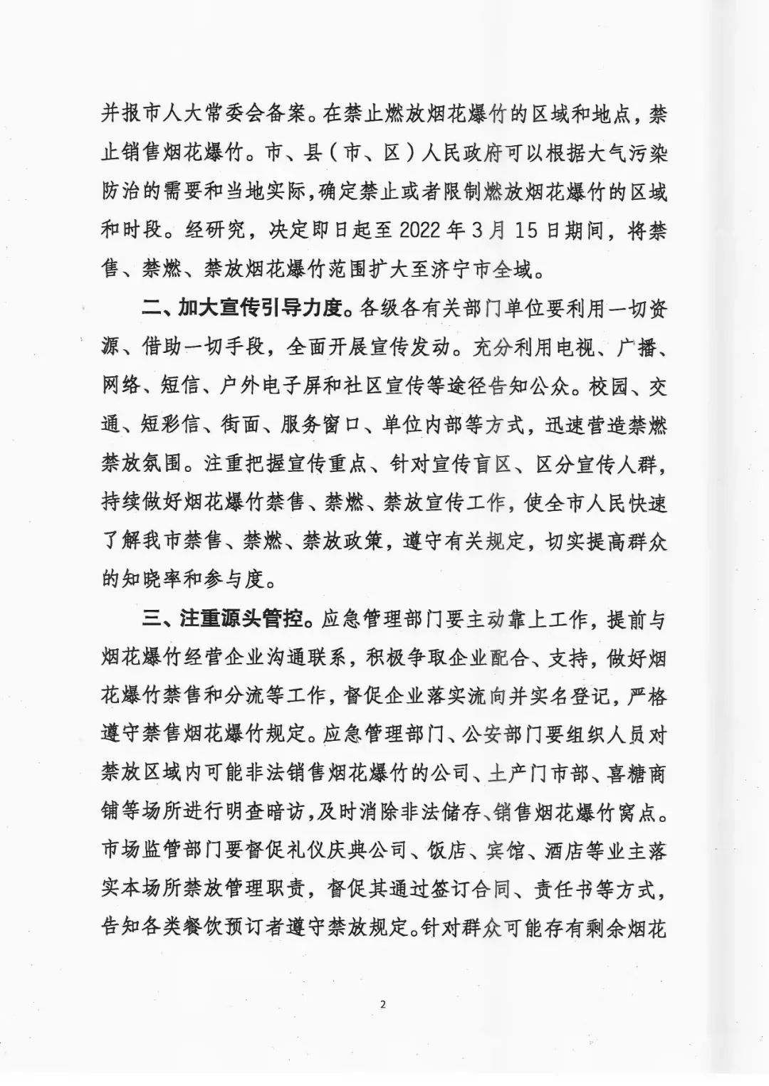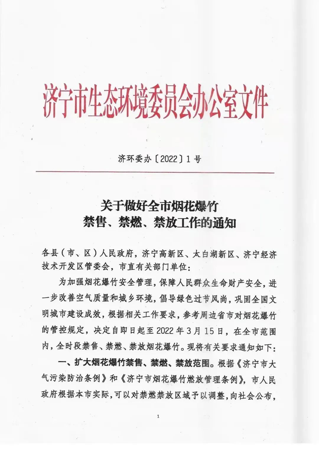 济宁人请注意!全市范围内全时段禁售、禁燃、禁放烟花爆竹