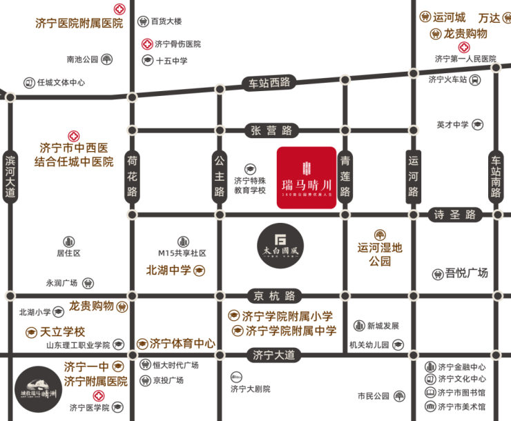 瑞马晴川项目位于济宁老城区与太白湖区的双区交汇核心,10分钟即可到达济宁最繁华的地段。太白湖新区的商业配套愈发成熟,项目东侧就是新城吾悦广场,运河上城等新贵商超。丰盛的商业配套,满足璀璨生活所需。