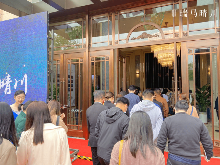 上午10:00随着优雅动感的小提琴音乐开场,活动正式拉开了帷幕。伴随着剪彩嘉宾金色剪刀落下,瑞马晴川售楼中心耀世,正式开门迎客。