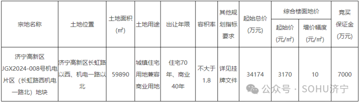 起始价3.4亿!济宁高新区1宗土地挂牌