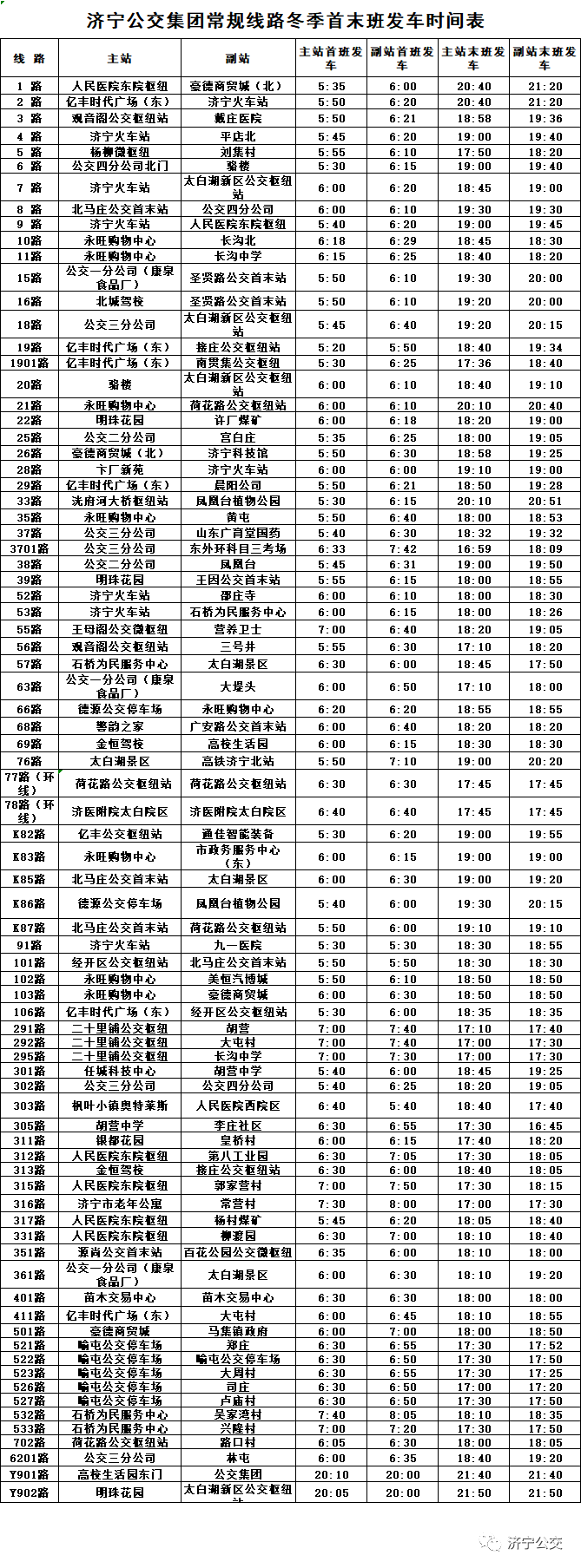济宁公交在2023年11月1日至2024年3月31日期间执行冬季运营时间,请广大乘客注意。