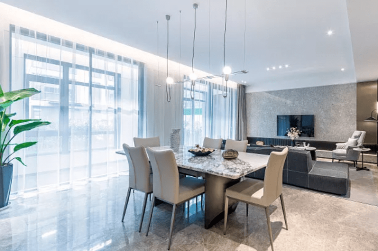 足够的层高,生活的天花板被延伸,配齐新风、地暖和中央空调三大件毫无压力,不会有空间过低的局促感,依然可以保持空间的朗阔感与从容感。