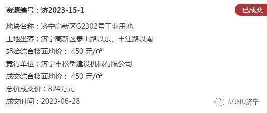 地块名:济宁高新区G2302号工业用地【济宁市松岳建设机械有限公司竞得】