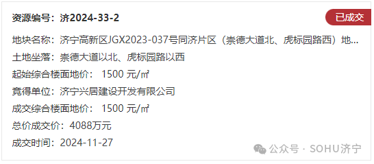 地块二:济宁高新区JGX2023-037号同济片区(崇德大道北、虎标园路西)地块【济宁兴居建设开发有限公司竞得】