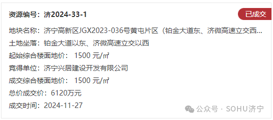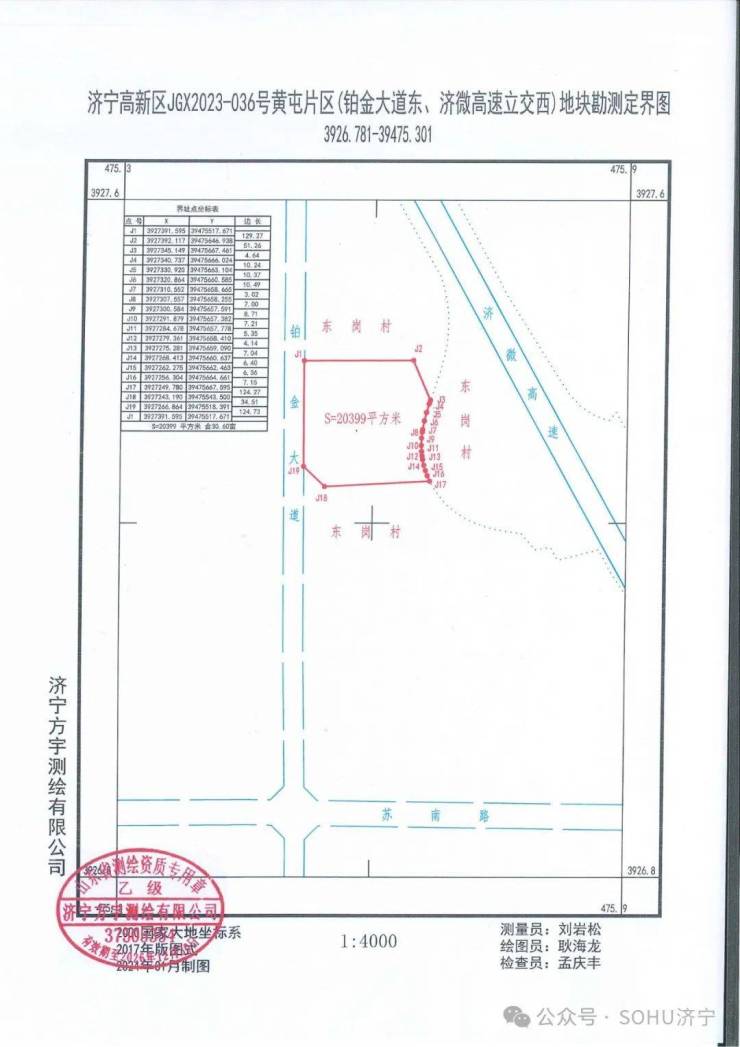 地块一:济宁高新区JGX2023-036号黄屯片区(铂金大道东、济微高速立交西)地块【济宁兴居建设开发有限公司竞得】