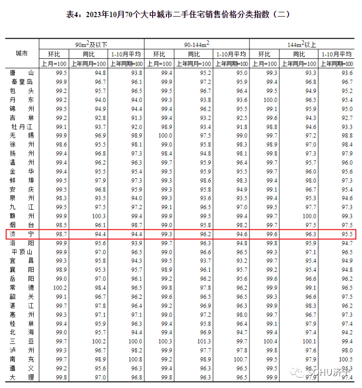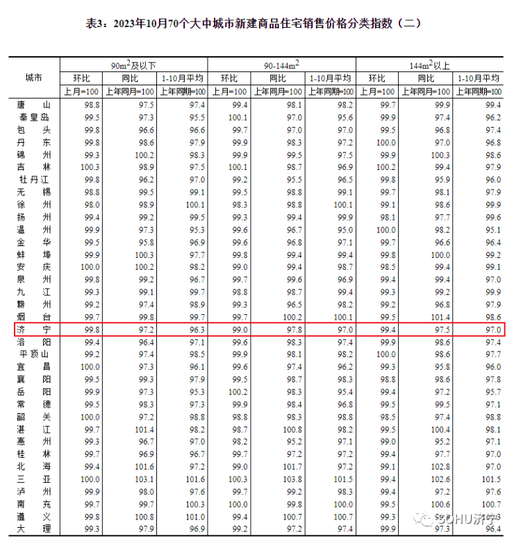 搜狐网济宁小编注意到:今早9点30分,国家统计局发布了2023年10月份70个大中城市商品住宅销售价格变动情况统计数据。2023年10月份济宁新建商品住宅销售价格环比下降0.8个百分点。