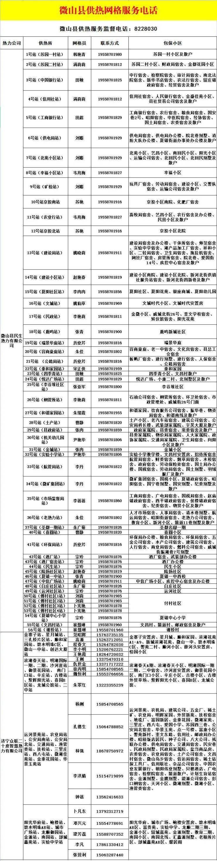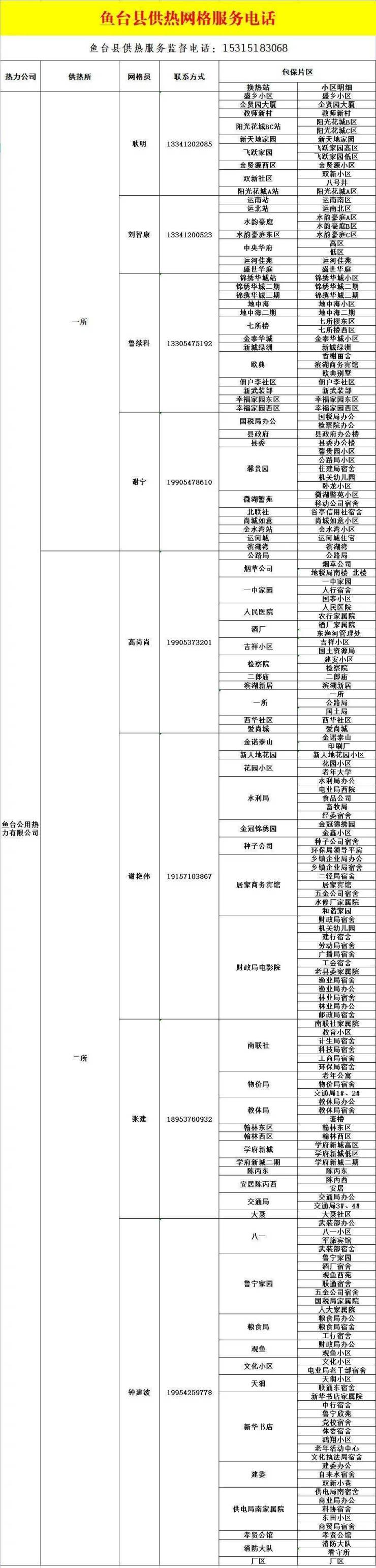 为进一步做好2022-2023年集中供热工作,及时有效处理群众诉求,切实提高供热服务质量,市住建局指导各县(市、区)严格执行供热服务“网格化”管理制度,要求各供热企业逐一划分供热片区、明确小区包保负责人,全面负责包保小区供热服务工作,现将全市集中供热“网格化”服务电话公布如下。广大市民群众如有供热服务诉求,可直接拨打网格服务电话。