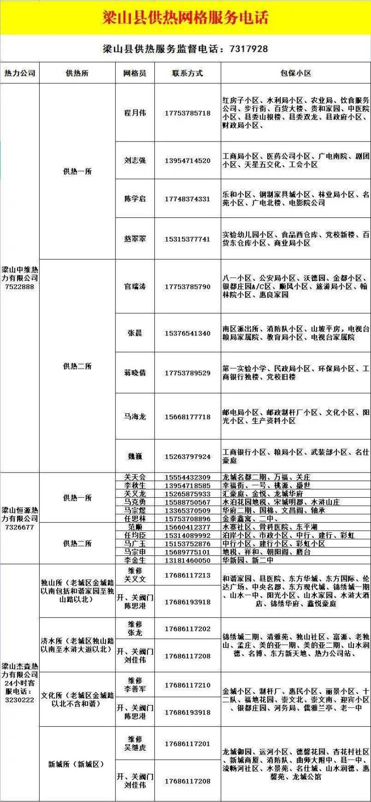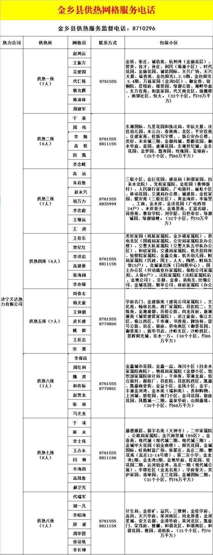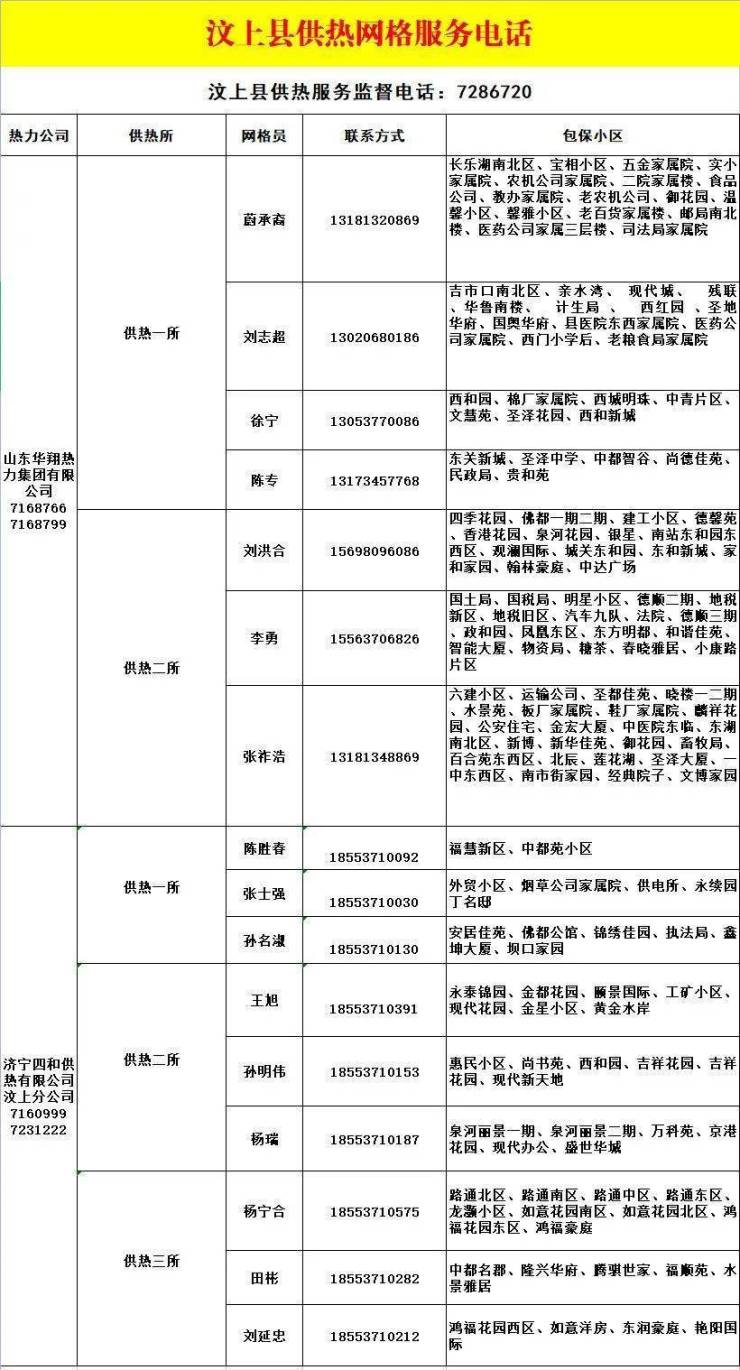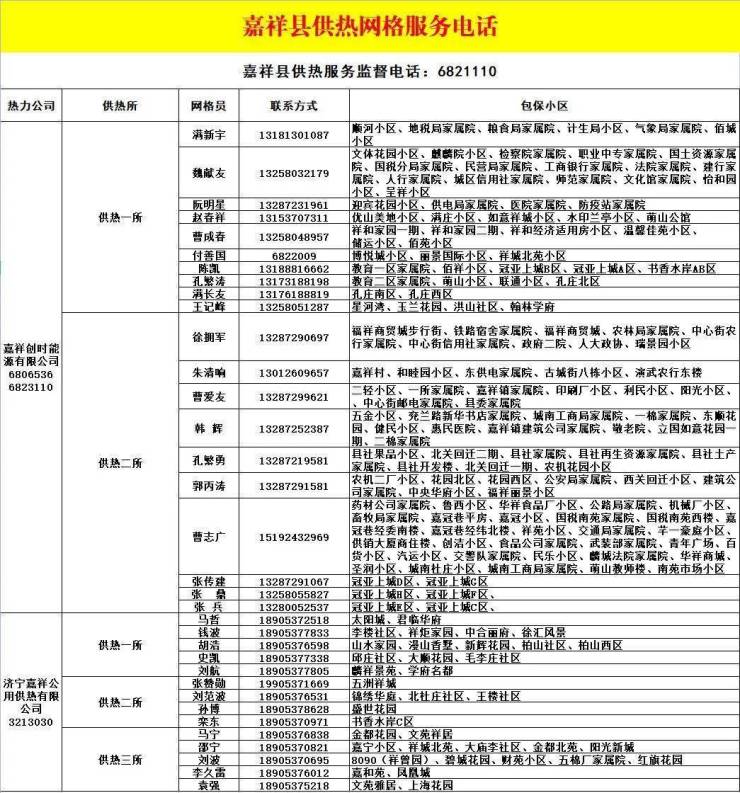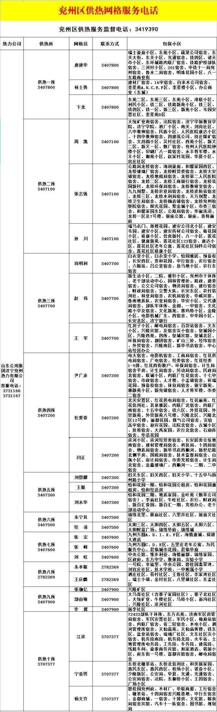 济宁市今冬“采暖季”集中供热“网格化”服务电话来了