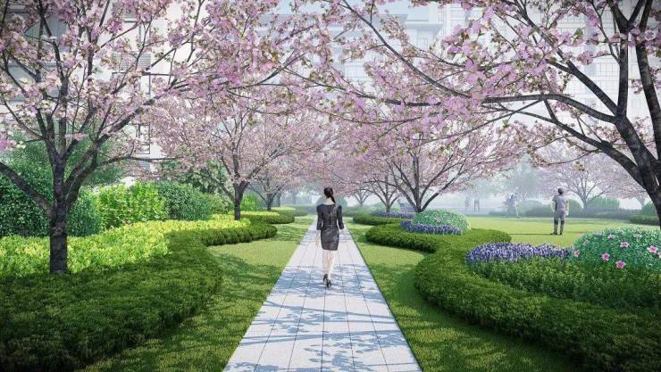 拥有高达约35%的绿地率,一半自然一半家。一年四季的风景更迭,不仅满足一家人的娱乐休闲,也能享受到丰沛的鲜氧。