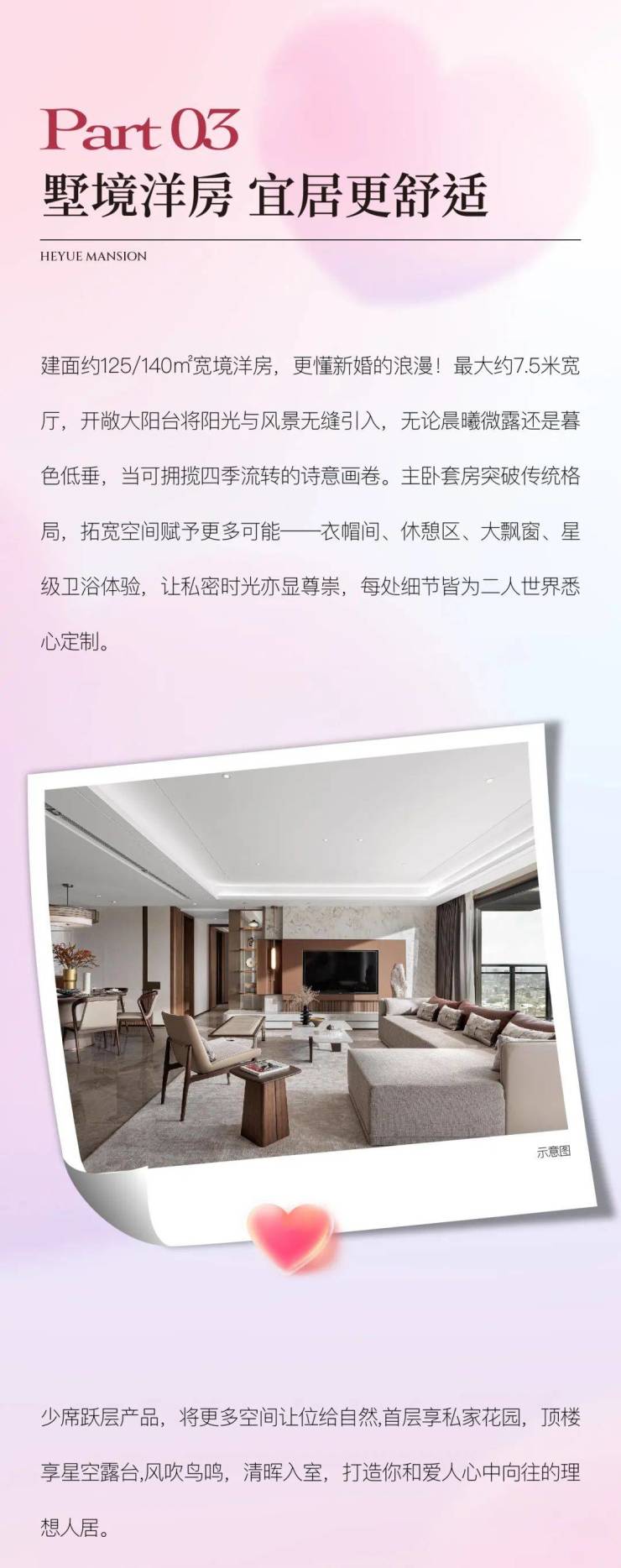 中垠·和悦府建面约125/140㎡宽境洋房,更懂新婚的浪漫!最大约7.5米宽厅,开敞大阳台将阳光与风景无缝引入,无论晨曦微露还是暮色低垂,当可拥揽四季流转的诗意画卷。主卧套房突破传统格局,拓宽空间赋予更多可能——衣帽间、休憩区、大飘窗、星级卫浴体验,