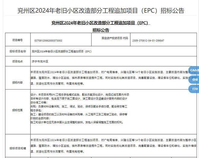 近日,兖州公共资源交易网发布兖州区2024年老旧小区改造部分工程追加项目(EPC)定标候选人公示。
