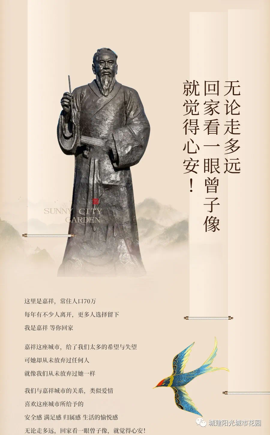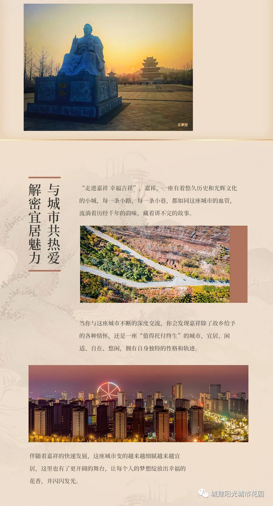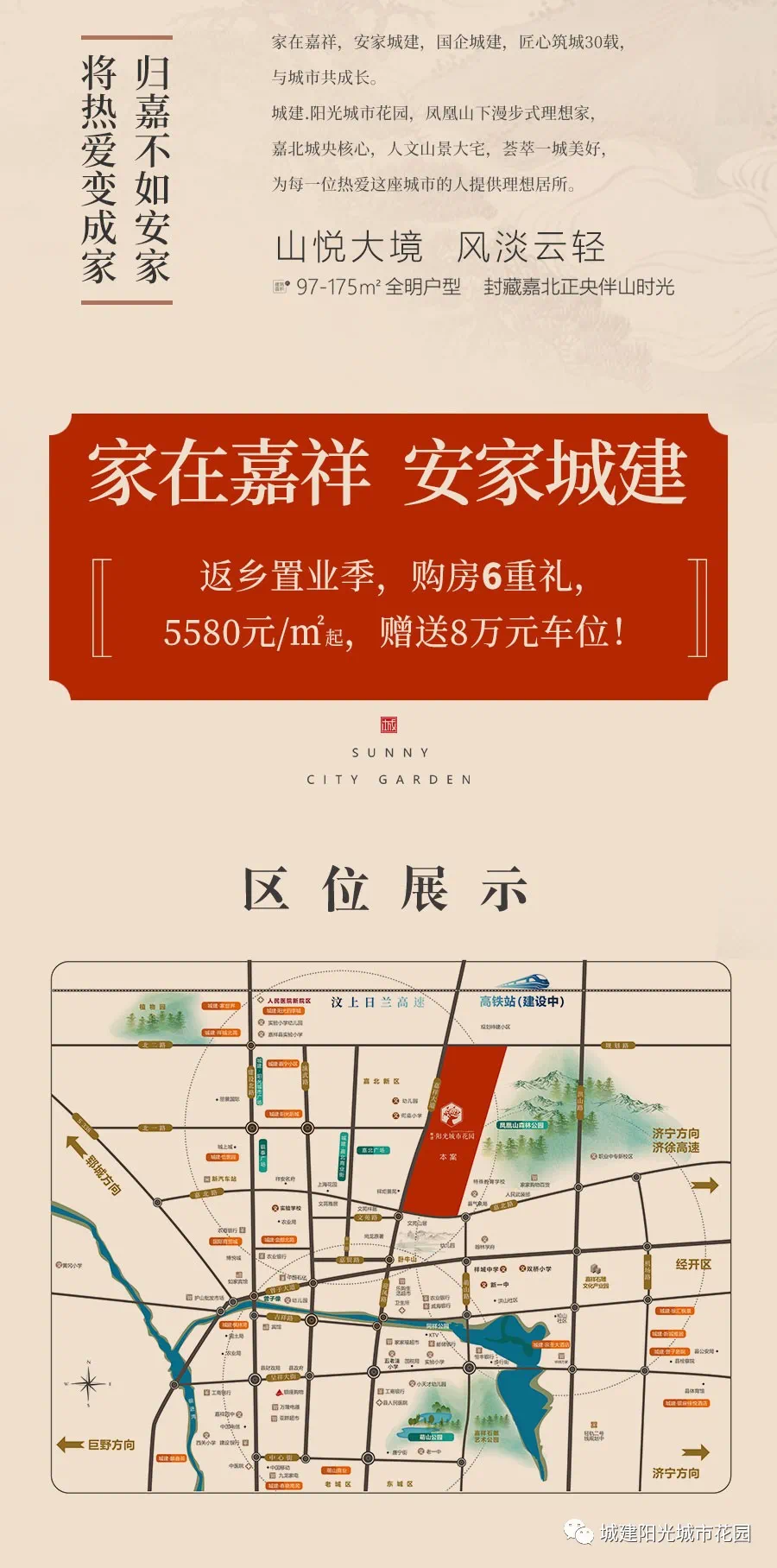 家在嘉祥,安家城建,国企城建,匠心筑城30载,与城市共成长。阳光城市花园,凤凰山下漫步式理想家,嘉北城央核心,人文山景大宅,荟萃一城美好,为每一位热爱这座城市的人提供理想居所。