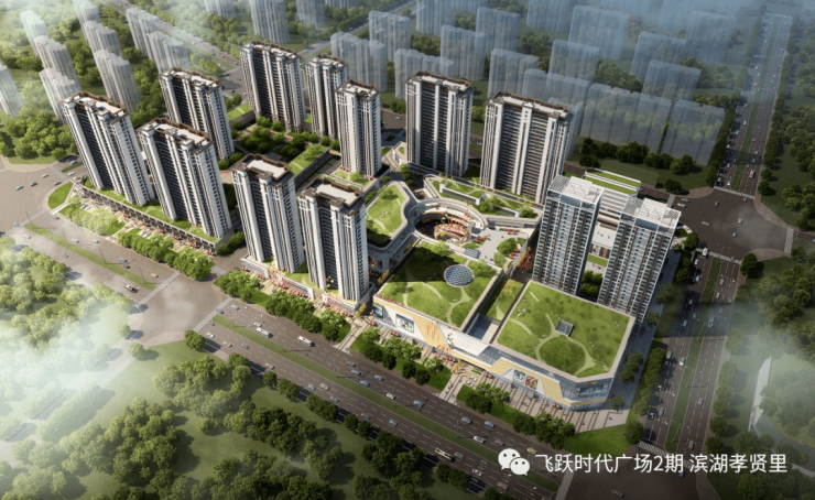 飞跃时代广场总体量达32万方,1期4.7万方,2期-滨湖·孝贤里27.4万方,由多功能商业MALL、华美住宅、精品酒店和风情商业步行街组成。复合多种业态,以“商务、购物、居住”多元化的规划理念,建设主城区商务、商业、生活中芯区,打造出融“休闲娱乐商住购”于一体的城市超级综合体。
