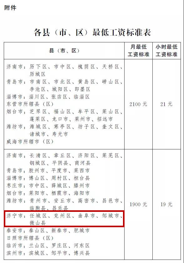 一、调整后的全省月较低工资标准为2100元、1900元、1700元;小时较低工资标准为21元、19元、17元。各县(市、区)较低工资标准见附件。