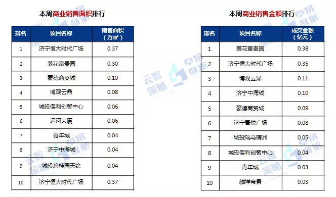 本周济宁恒大时代广场项目以销售面积0.37万㎡位居销售面积排行榜排名前列;菱花富贵园项目以销售金额0.38亿元,位居销售金额排行榜排名前列。