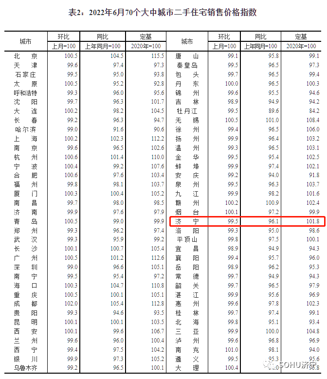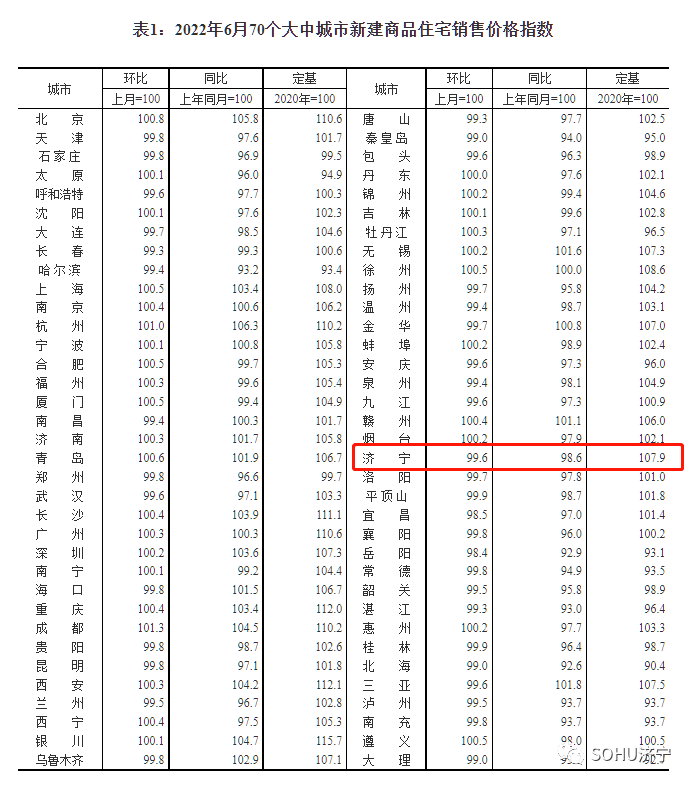 搜狐网济宁小编注意到:今早9点30分,国家统计局发布了2022年6月份70个大中城市商品住宅销售价格变动情况统计数据。2022年6月份济宁新建商品住宅销售价格环比降幅0.4个百分点。