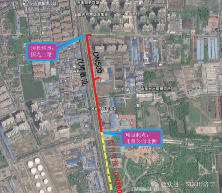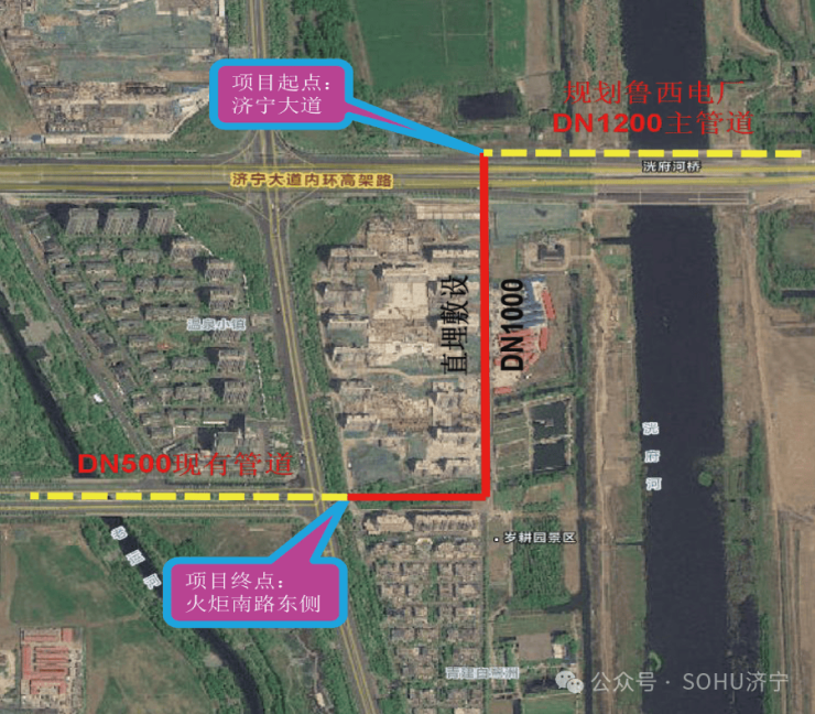 3、建设位置:工程起点为济宁大道,终点为火炬南路东侧。敷设位置在洸府河南路西侧、礼贤路北侧绿化带下。