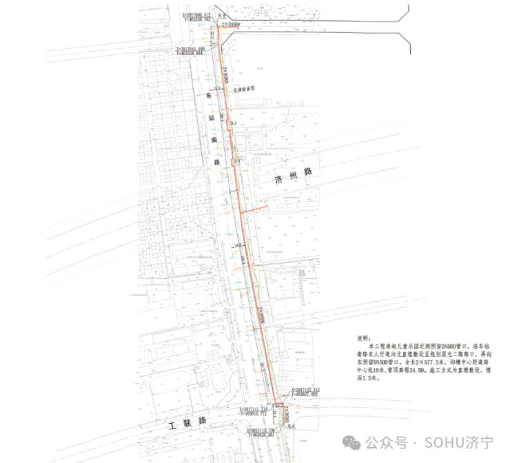 4、建设规模:供热管道管径DN500,全长2×577.3米。
