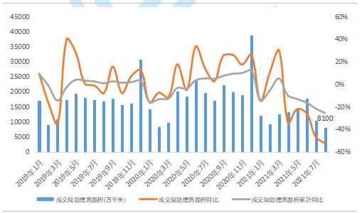 8月份全国351城土地成交金额与成交量同比明显下滑。主要受到三个因素影响:一是土地供应结构性因素,8月多数22城集中供地城市延期拍地,显著影响土地市场成交量;二是受到季节性波动影响,从历史数据看8月的成交金额与成交量皆为环比下降;三是随着政策逐步趋严,房企拿地渐谨慎,今年8月成交量与成交金额和2020年、2019年同期相比皆呈现下滑现象。