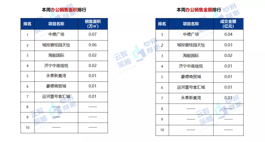 本周中德广场项目以销售面积0.07万㎡,销售金额0.04亿元,位居办公成交面积,金额双排行榜排名前列。